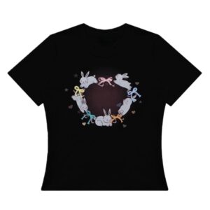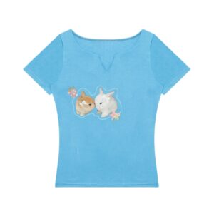 Slim-Fit T-Shirt With Small V-Neck And Rabbit Print